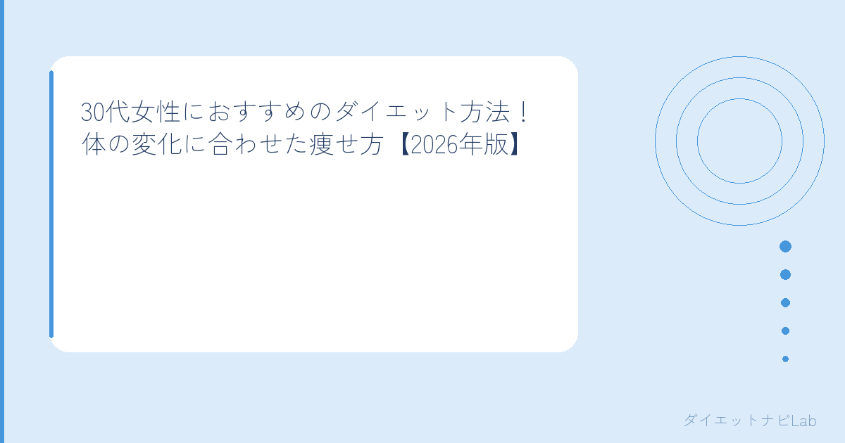 同じダイエットでも年代によってアプローチは変わる。30代の特徴を理解しておくと、より効果的に取り組めるよ。