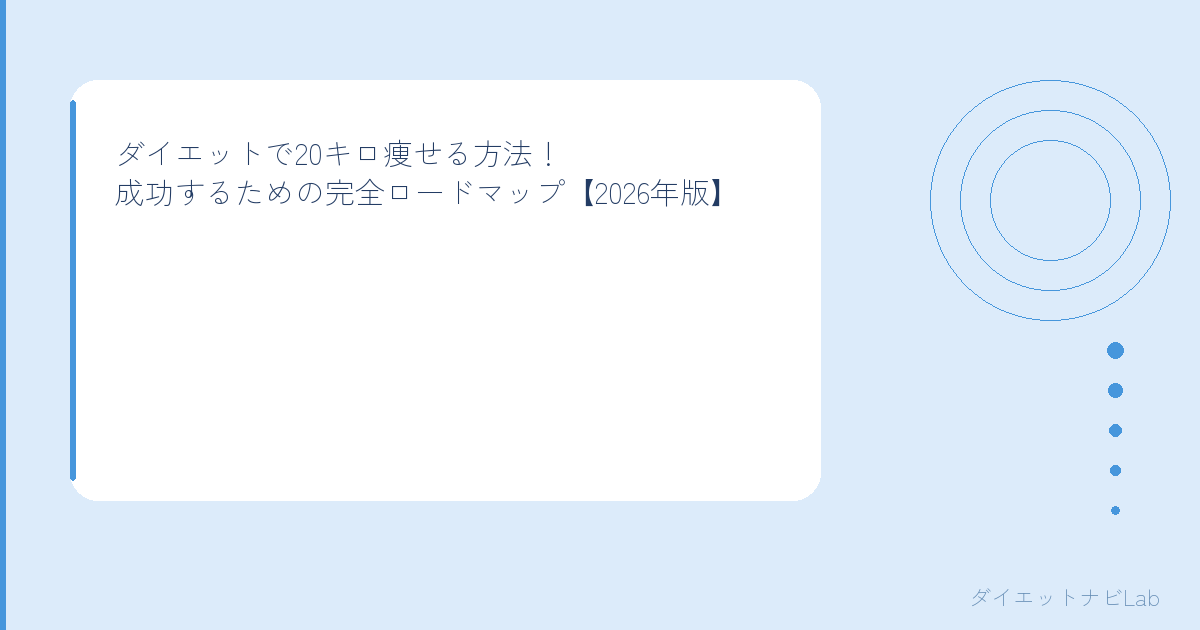 20キロのダイエットは、人生を変えるレベルの挑戦。見た目が劇的に変わるのはもちろん、健康状態も大幅に改善されるよ。無理しなくて大丈夫!でもその分、正しい知識と計画なしにやると体を壊すリスクも高い。
