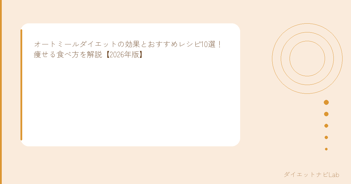 オートミールダイエットの効果とおすすめレシピ10選!痩せる食べ方を解説【2026年版】