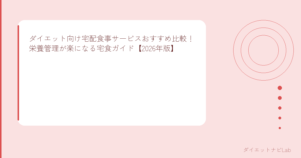 ダイエット向け宅食サービスは「食事管理の手間を省きたい」「何を食べればいいか分からない」という人にとって、非常に強力なツールです。