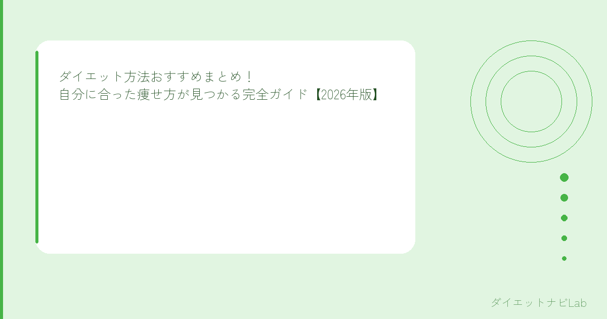 この記事では、主要なダイエット方法を食事系・運動系・生活習慣系に分けて、メリット・デメリット・向いている人をまとめました。自分に合う方法を見つける参考にしてください。